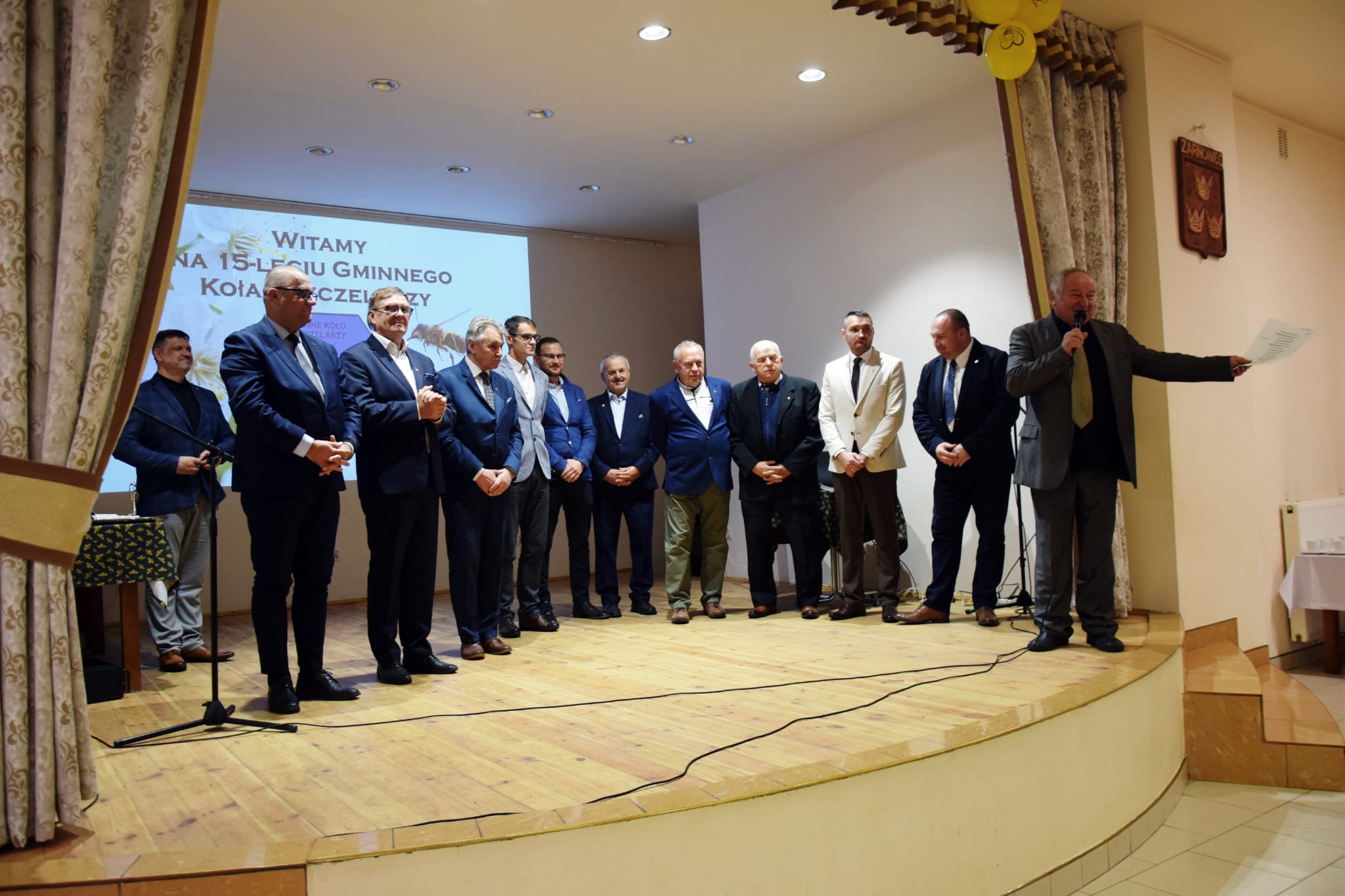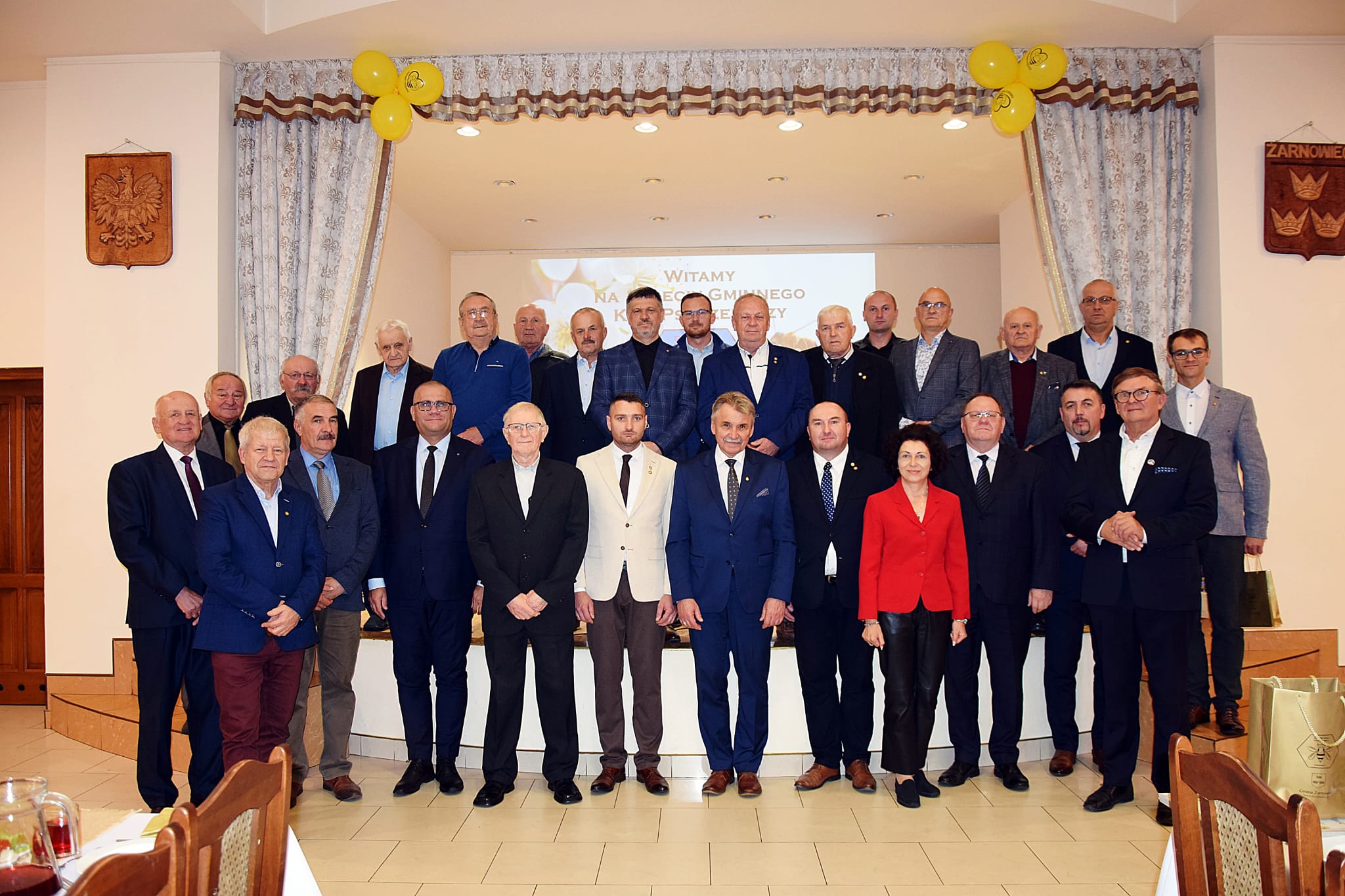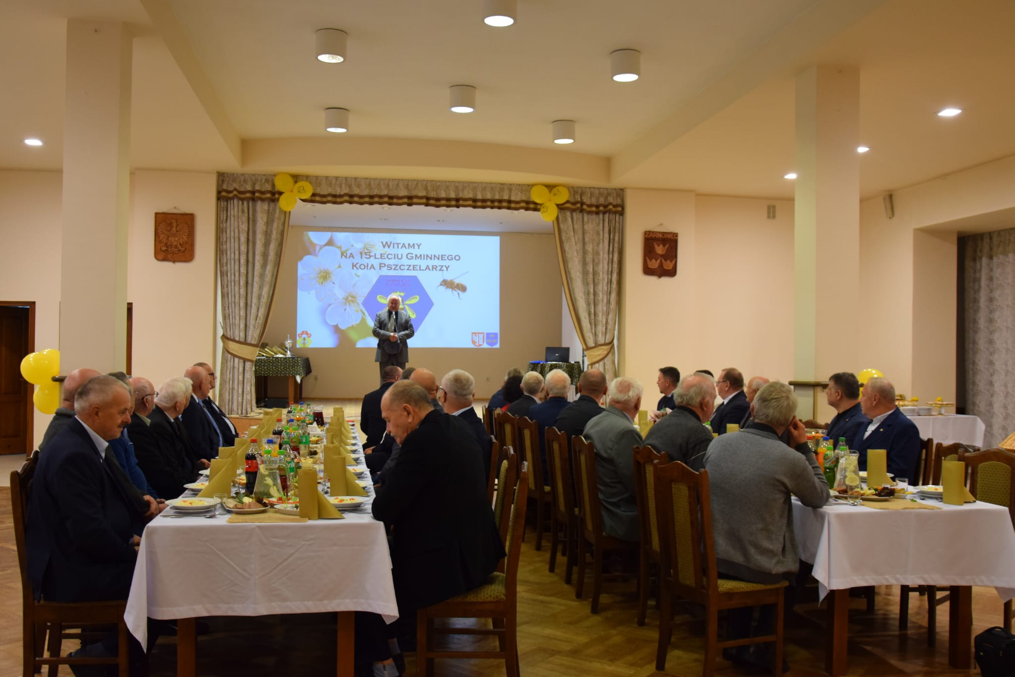 W dniu 11.10.2025r. w kościele Narodzenia NMP w Żarnowcu rozpoczęły się obchody Jubileuszu 15- lecia Gminnego Koła Pszczelarzy w Żarnowcu. Mszę Świętą odprawił i homilie wygłosił ks. Edward Molenda członek Naszego Koła. Po Mszy Świętej zaproszeni goście wraz z członkami przeszli do Gminnego Ośrodka Kultury, Sportu i Turystyki na salę gdzie zostali powitani przez Prezesa Koła kol. Rafała Seweryna. W Jubileuszu brali udział: Prezes Śląskiego Związku Pszczelarzy w Katowicach p. Zbigniew Binko, Wójt Gminy Żarnowiec p. Grzegorz Scelina, Radny Powiatu Zawierciańskiego p. Paweł Sokół, Przewodniczący Rady Gminy Żarnowiec p. Kazimierz Gębka, p. Wójt Eugeniusz Kapuśniak, Dyrektor Banku Spółdzielczego w Wolbromiu p. Witold Myszor, prezesi zaprzyjaźnionych kół pszczelarzy: Ogrodzieniec- kol. Adam Kordas, Pilica- kol. Barbara Laskowska, Wolbrom- kol. Robert Majda. Podczas obchodów kol. Łukasz Dziekan przedstawił historie Koła, a v-ce Prezes Karol Nowak omówił historie powstania i pokazał budowę Kłody Bartnej.
