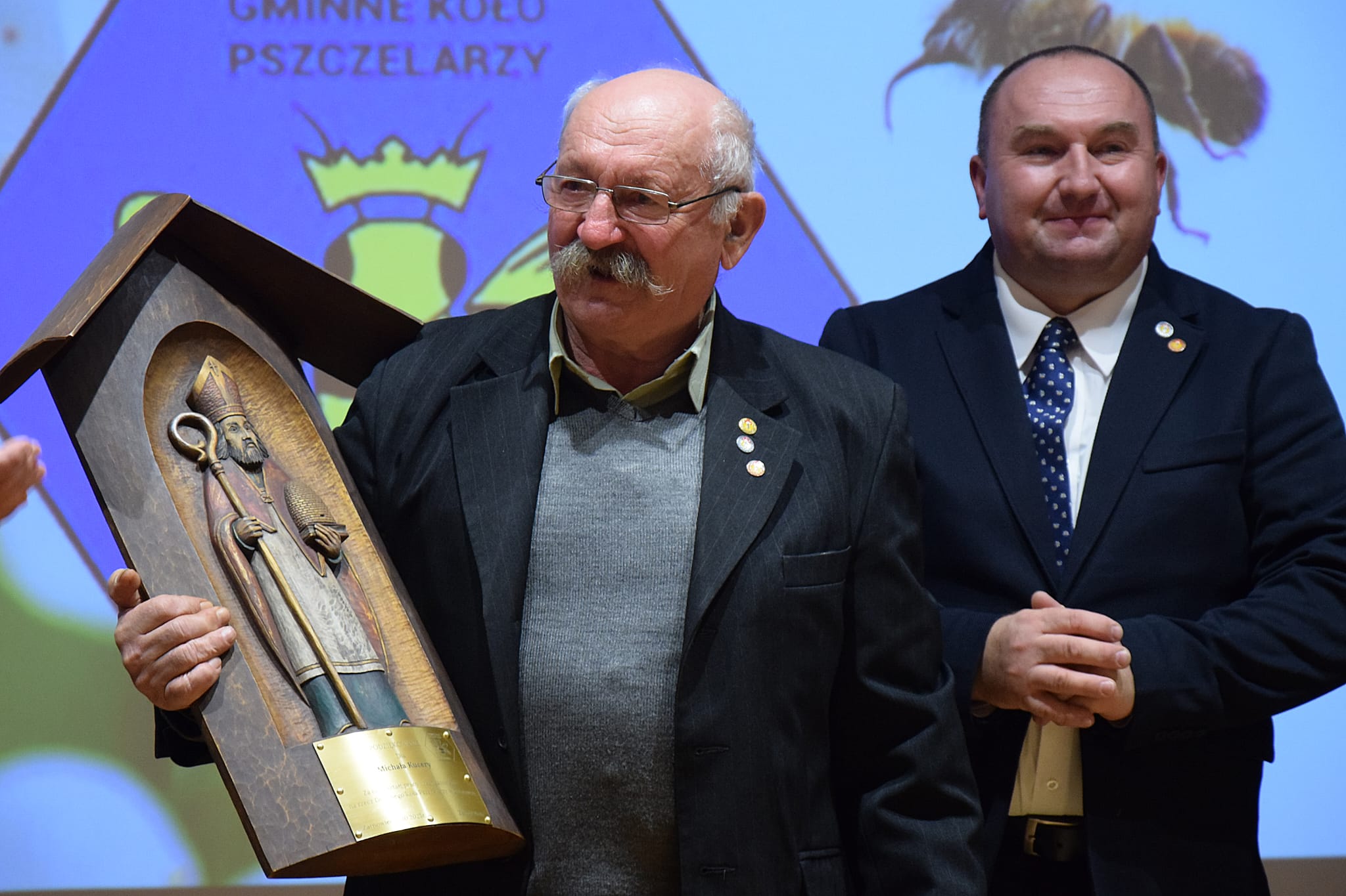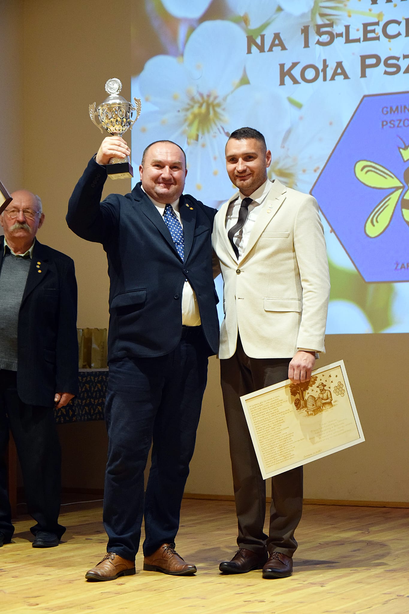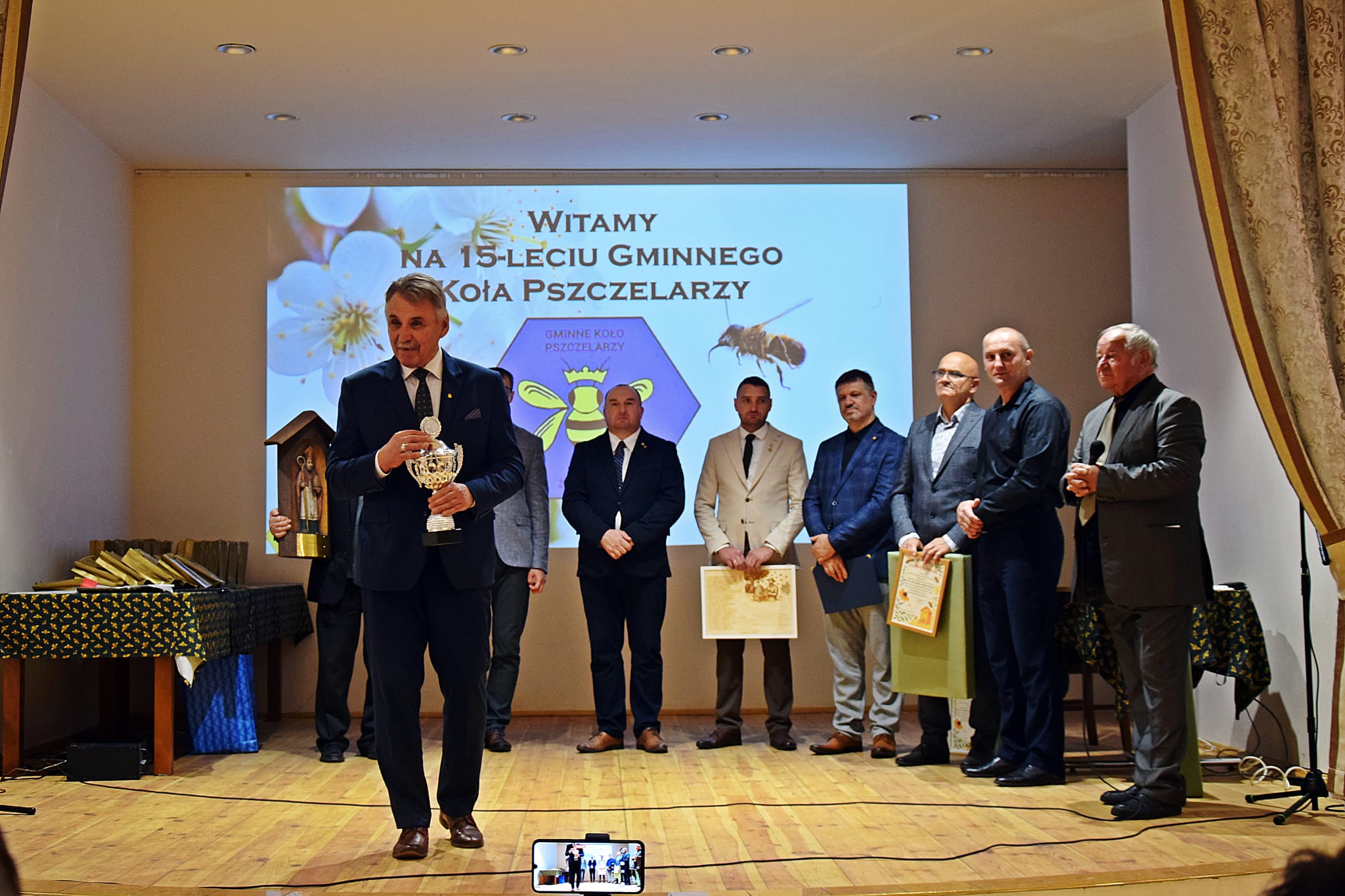Zarząd Koła za prace na rzecz Koła Pszczelarzy, kultywowanie praktyk pszczelarskich oraz zaangażowanie w życie Koła ufundował rzeźbę św. Ambrożego kol. Michałowi Kucerze. Wszyscy pszczelarze oraz zaproszeni goście otrzymali podziękowania i pamiątkowy odlew z wosku pszczelego dedykowany na tę uroczystość. Czym że był by Jubileusz bez tortu- osobiście krojony przez prezesa i v-ce prezesa Koła. Po pysznej kawie i torcie zaproszeni goście wpisali się do Kroniki Gminnego Koła. Całą uroczystość prowadził aktor Teatru Zagłębia w Sosnowcu kol. Wojciech Leśniak.