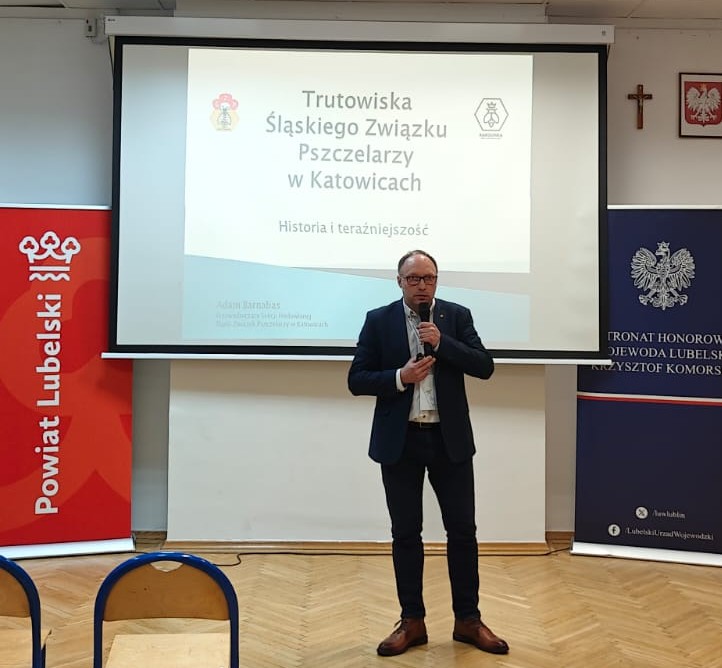 W dniach 20-22 lutego 2026r. w Zespole Szkół Rolniczych w Pszczelej Woli odbyła się XI Międzynarodowa Konferencja Pszczelarska, która zgromadziła ponad 300 słuchaczy. Prelegentami biorącymi udział w konferencji byli przedstawiciele świata nauki oraz pszczelarze praktycy z Polski, Austrii i Estonii. Śląski Związek Pszczelarzy w Katowicach jako wykładowca reprezentował kol. Adam Barnabas, przewodniczący Sekcji Hodowlanej przedstawiając swoją prelekcję pt. „Trutowiska Ślaskiego Związku Pszczelarzy w Katowicach – historia i teraźniejszość”. Cześć historyczna tej prelekcji powstała dzięki materiałom zebranym w książce pt. ” Trutowiska w lasach i parkach krajobrazowych województwa śląskiego ” autorstwa Pana Adama Wilczyńskiego, przewodniczącego Sekcji Historycznej.