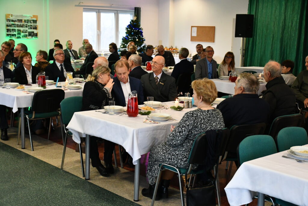 W dalszej części uroczystości uczestnicy wspólnie biesiadowali przy dźwiękach muzyki i śpiewaniu kolęd w wykonaniu naszego kolegi pszczelarza Tomka Pińkowskiego z kolegą z zespołu.